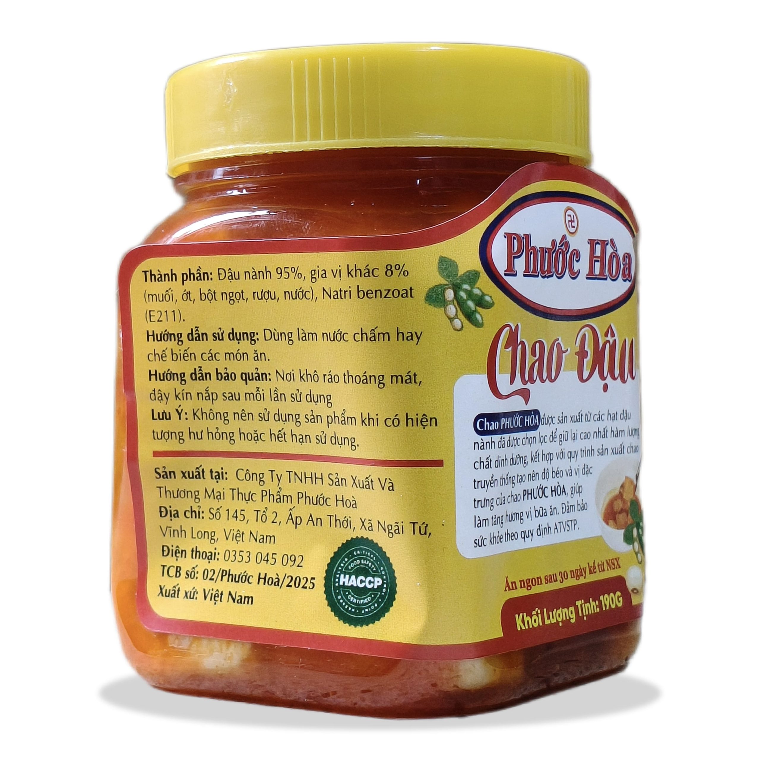 Chao đậu PHƯỚC HÒA được sản xuất từ các hạt đậu nành đã được chọn lọc để giữ lại cao nhất hàm lượng chất dinh dưỡng, kết hợp với quy trình sản xuất chao truyền thống tạo nên độ béo và vị đặc trưng của chao PHƯỚC HÒA, giúp làm tăng hương vị bữa ăn.